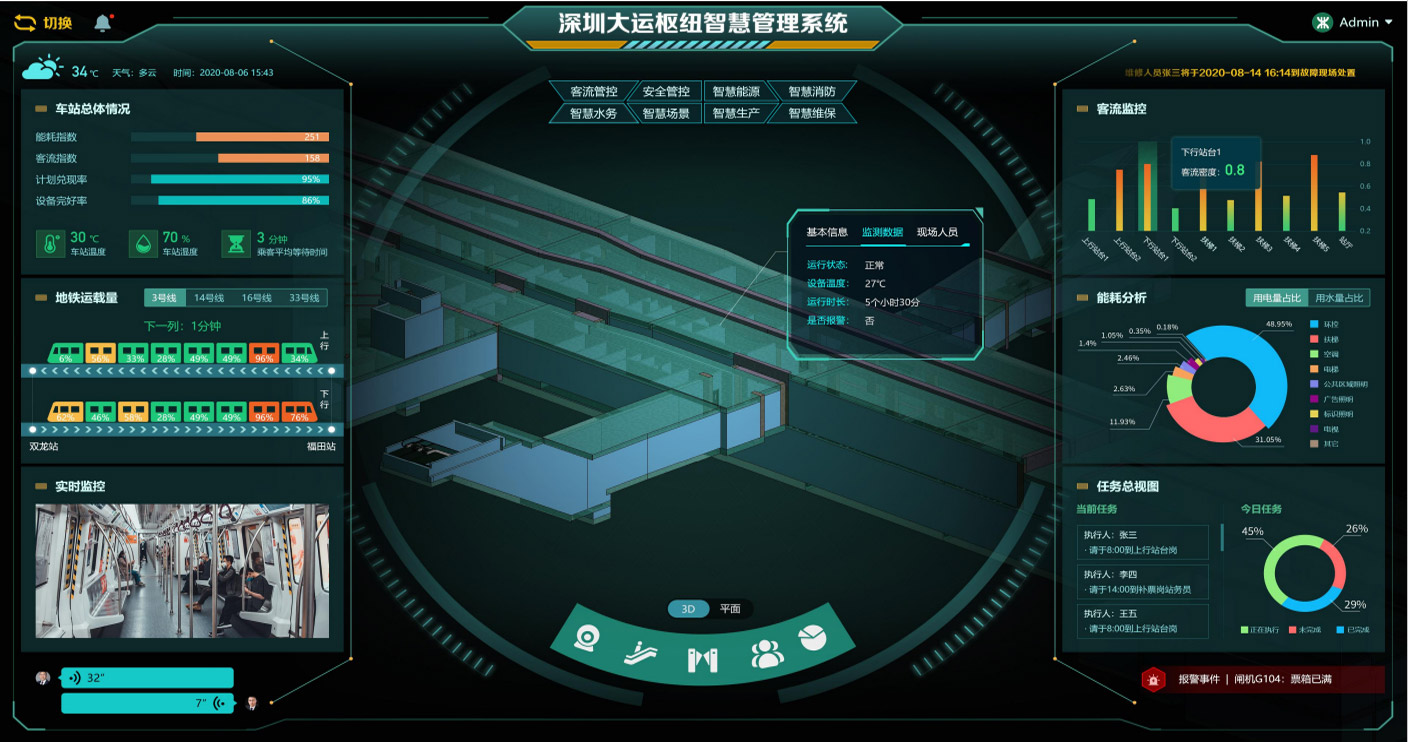将由感知层导入的大量多样化数据格式、碎片化数据类型进行合并与耦合,形成运营特征大数据库,并随着配套数字模型的加载,提供可视化数据展示服务。